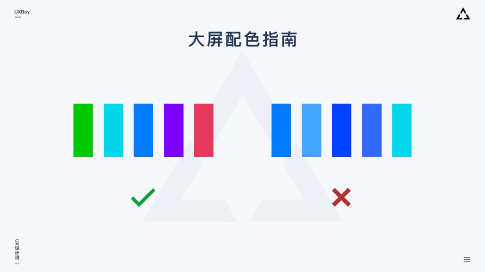 漸變色慎重使用:大屏普遍色域有偏差,顯示偏色,因而使用漸變色需要根據(jù)大屏反饋確定是否調(diào)整,純色最佳。