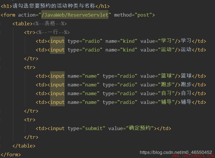 預(yù)約功能的實(shí)現(xiàn)更是與注冊功能的實(shí)現(xiàn)基本一致。所不同的應(yīng)該是jsp頁面對單選框輸入的設(shè)置。