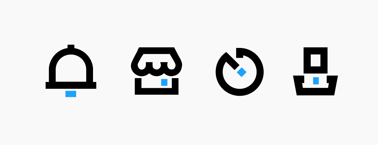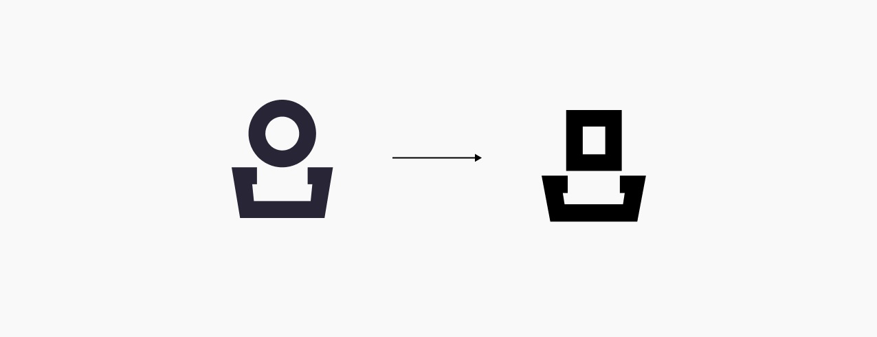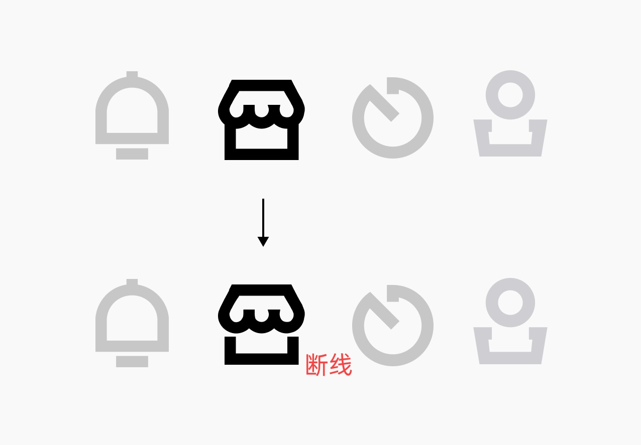 大家要明白,雖然我們可以直接下載圖標(biāo)素材,而且可以通過審美讓他們變得相對(duì)精致統(tǒng)一,但素材畢竟還是通用的,我們還是需要融入自己的想法和設(shè)計(jì),不能完全依賴素材,舉一個(gè)最簡(jiǎn)單的例子,“我的”這個(gè)圖標(biāo),他的腦袋是圓形的,那我們是不是可以把他改成矩形的?
