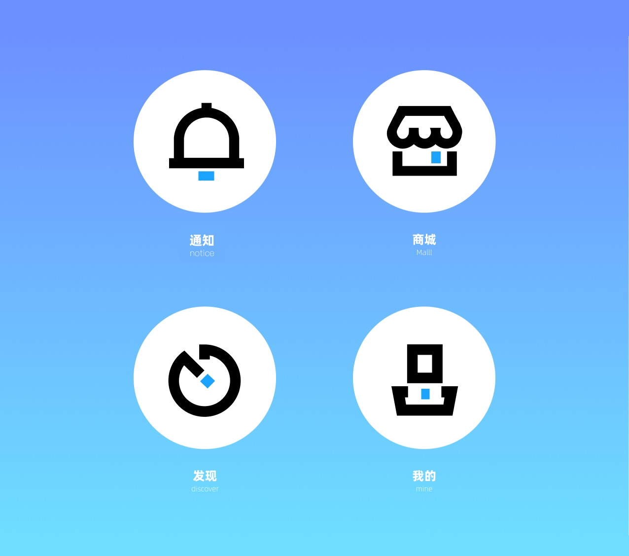 我們這次做的圖標(biāo)分別為:通知、商城、發(fā)現(xiàn)、我的。