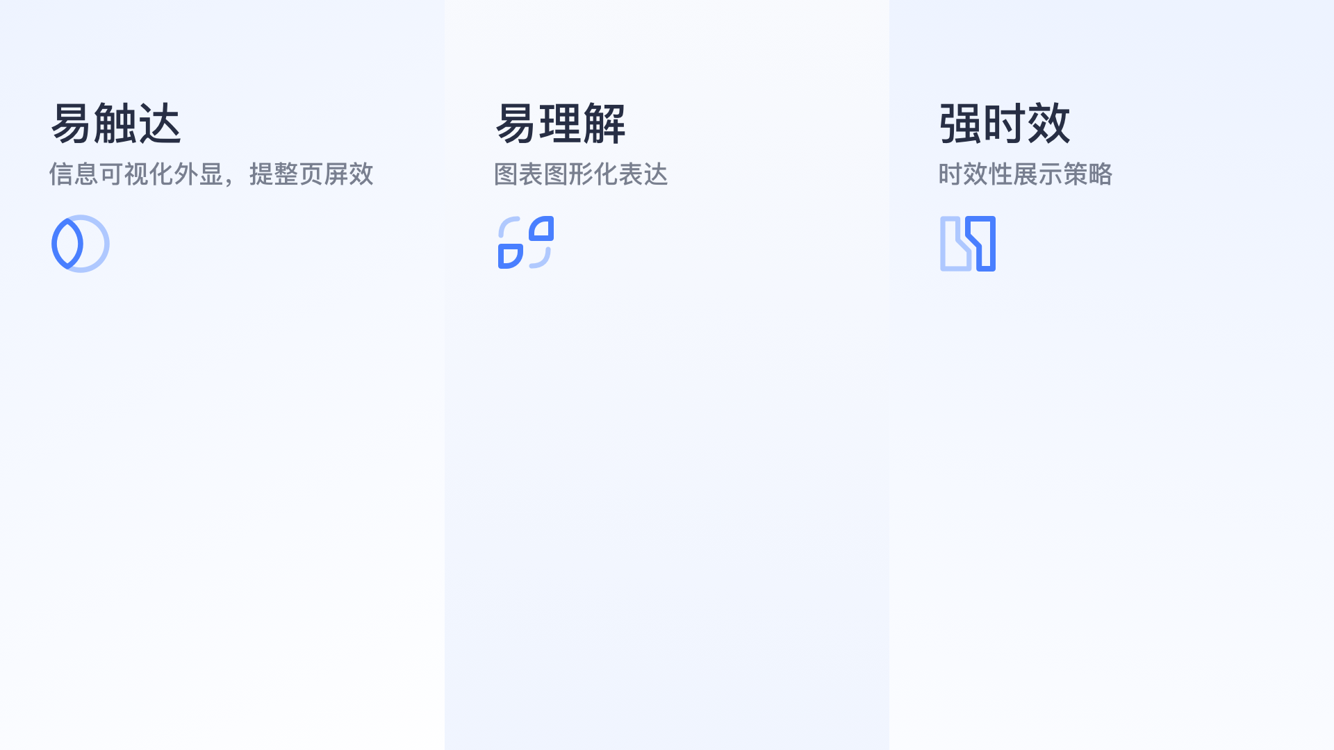易理解:通過數(shù)據(jù)結(jié)構(gòu)化、圖形可視化、標簽化字體等用戶更易理解的設(shè)計表達語言,幫助用戶更簡單快捷的獲取信息。