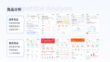 設(shè)計優(yōu)化思路:結(jié)合競品優(yōu)劣勢可得出,需要在提高信息豐富度的同時,考慮小白用戶的入門成本,用更可視化及簡潔的設(shè)計語言輔助用戶快速獲取有效需求信息。
