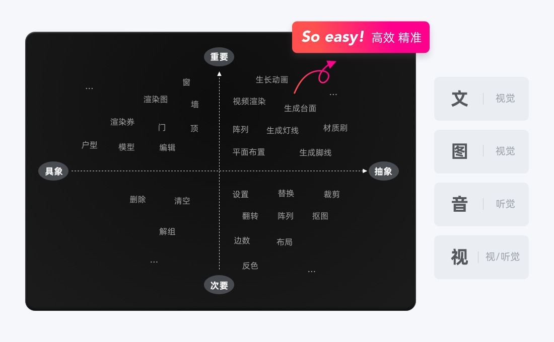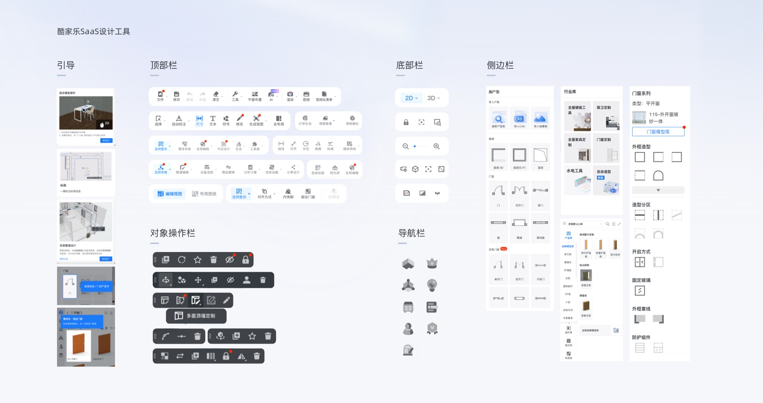 群核科技下產(chǎn)品正是這樣的特點(diǎn),以酷家樂云設(shè)計工具為例,系統(tǒng)交互結(jié)合各行業(yè)垂類場景,各種命令、操作、引導(dǎo)、畫面控制等信息的表達(dá)很容易讓用戶疑惑。