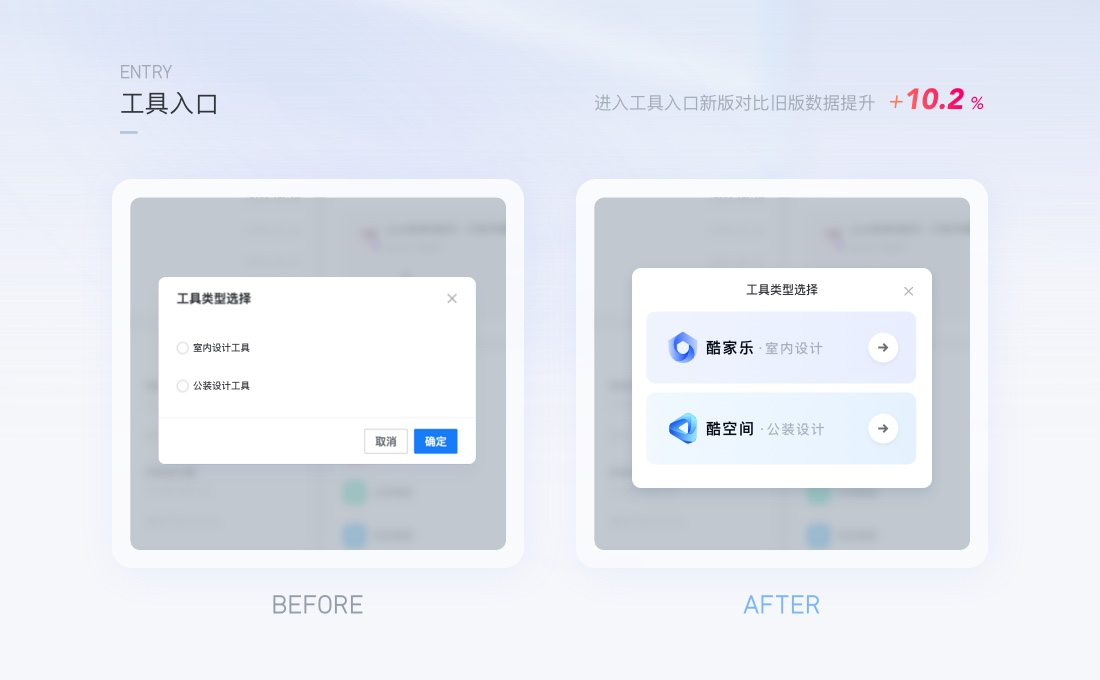 在新版優(yōu)化中圖形化的表達(dá)了圖紙類型的差異,即便增加了流程步驟數(shù),最終用戶點(diǎn)擊圖紙的UV提升了15%,此案例可以說明,更精準(zhǔn)有效的對象表達(dá)能吸引更多用戶來使用此功能,對業(yè)務(wù)產(chǎn)生直接效果。