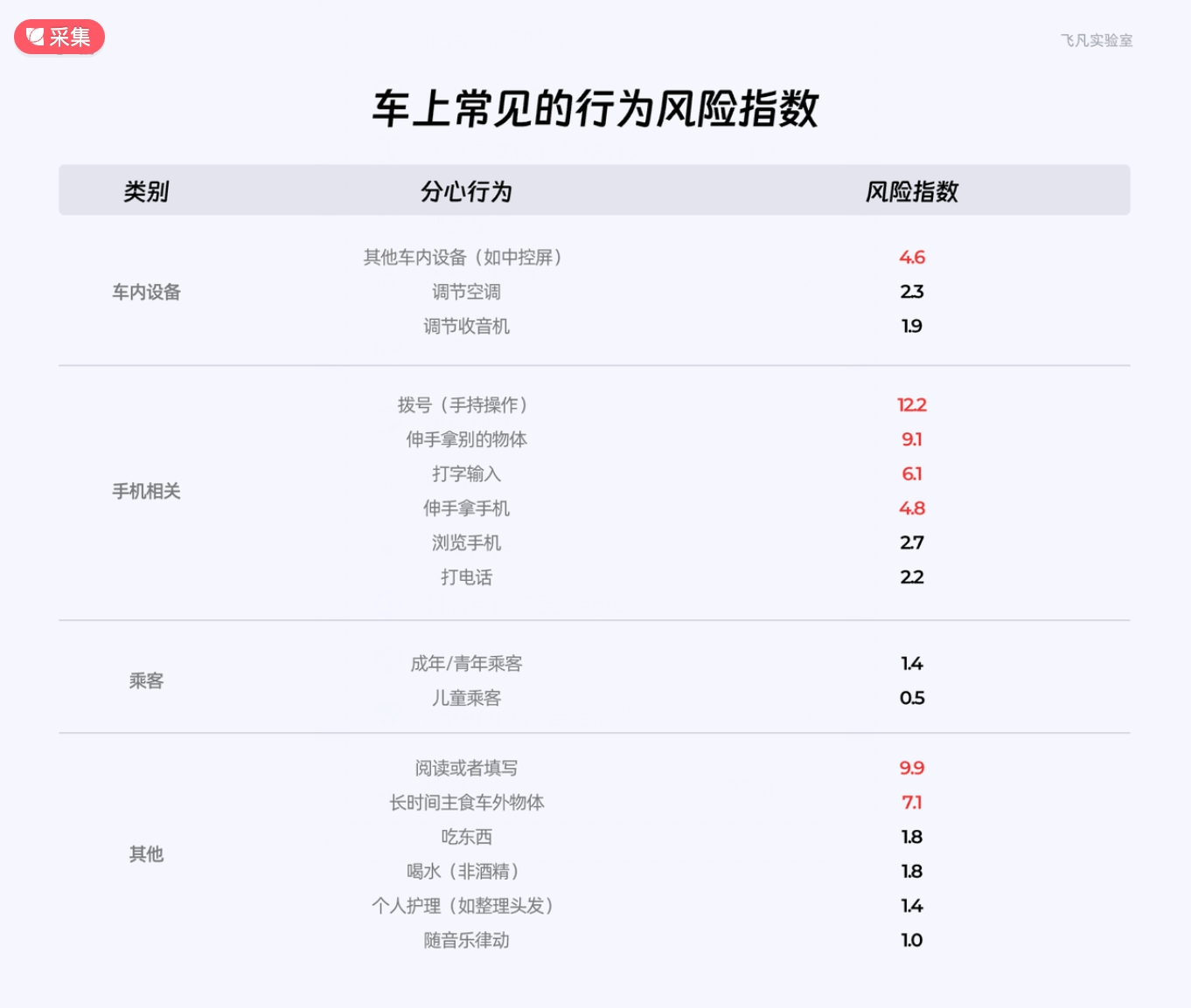 2、車上常見的行為風(fēng)險(xiǎn)指數(shù)