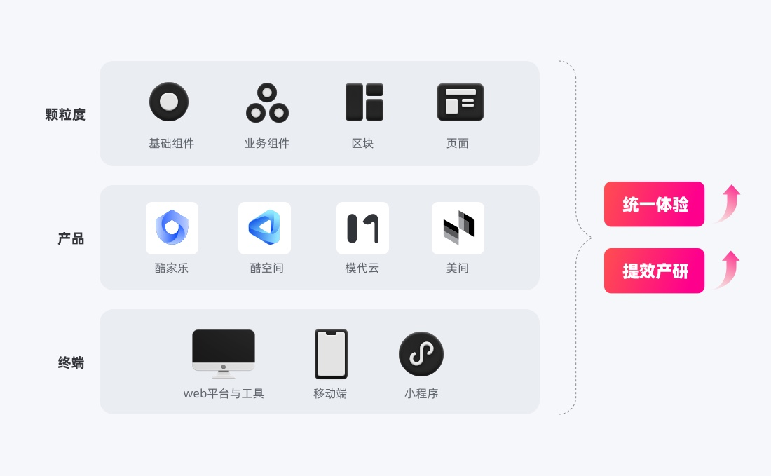 以組件為例,目前設(shè)計(jì)規(guī)范制定過程中,產(chǎn)出很重要一條的邏輯是“可復(fù)用單元”,如基礎(chǔ)組件、業(yè)務(wù)組件、模板等,通過將重復(fù)元素在代碼層統(tǒng)一,從而實(shí)現(xiàn)在用戶側(cè)一致的操作體驗(yàn)。