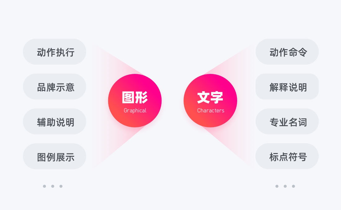 在界面中以圖形化的形式表達(dá)動作、品牌、說明等信息,讓用戶能直觀的感知到信息的含義,圖形的類型有:動作執(zhí)行類操作、品牌示意、輔助說明、圖例展示4大類型;