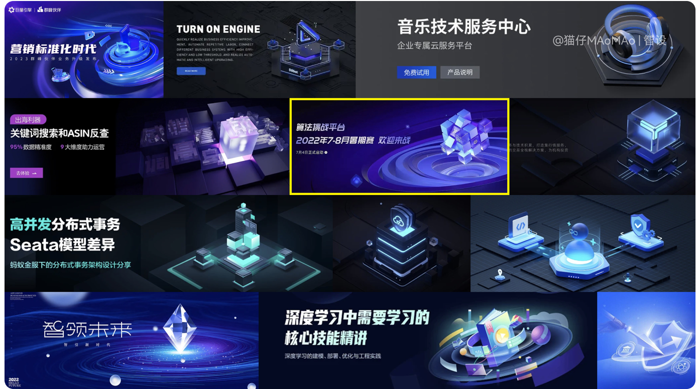 一般我們生成B端視覺,都是banner組圖等,不是單張出現(xiàn),想要保持風(fēng)格不變的同時(shí),主題內(nèi)容不同,只需要更改主體關(guān)鍵詞即可實(shí)現(xiàn),最終我們就得到了下圖需要的所有主視覺元素。