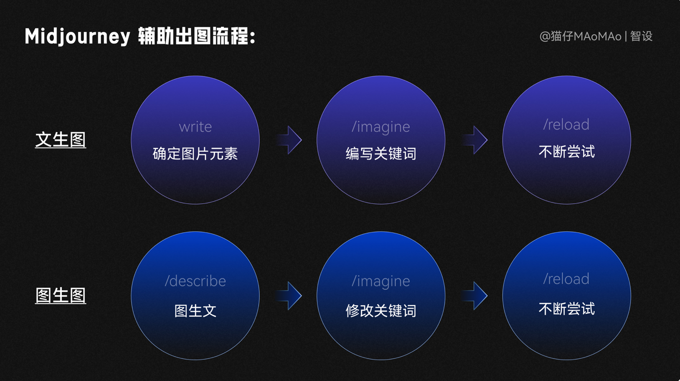 Midjourney生成圖片有兩條路徑:“文生圖”和“圖生圖”;