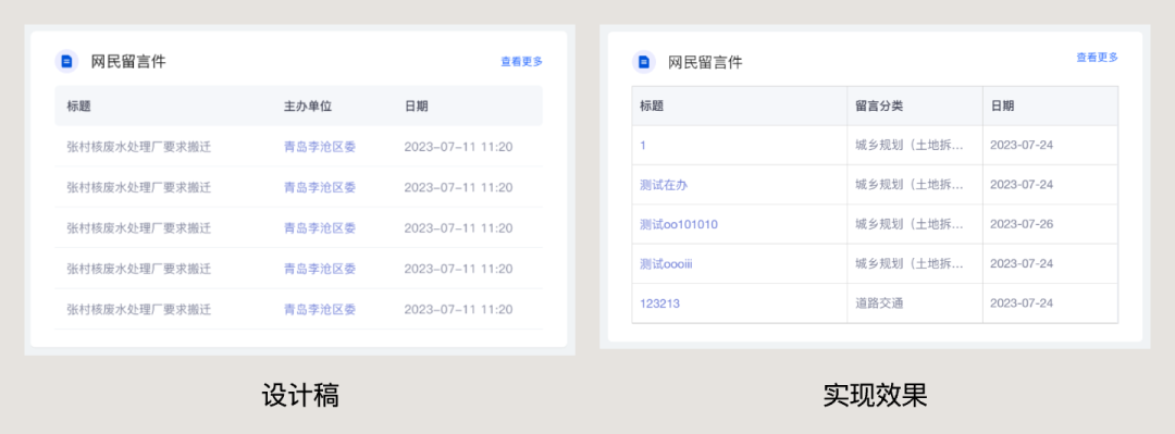這就導致,如果前端開發(fā)使用了一款前端框架,那么設計稿中使用的組件是這套框架中帶的,那就直接調用這個樣式,只要功能實現(xiàn)出來,樣式上能不改那就盡量不改。包括圖表也是,圖表也基本使用第三方的框架,所以實現(xiàn)出來和設計稿最多就是顏色接近,其它哪里都不像,比如下面的真實案例。