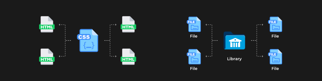 在前端實現(xiàn)中同理,樣式層中 CSS 樣式表就是用來控制頁面樣式的中心,可以在不同頁面,不同標簽(約等于圖層)中使用這個樣式。
