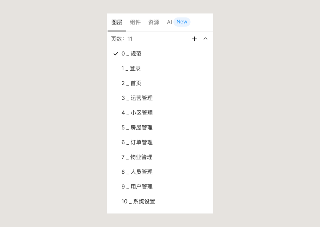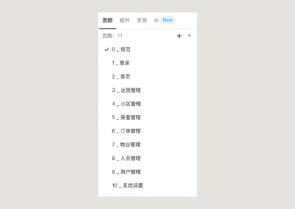 Page 就是軟件左上的畫布列表,一個項目如果頁面多,就一定要用 Page做拆分。而在我們當前的場景中,就可以根據交付的模塊階段劃分,每個模塊創(chuàng)建一個 Page,這樣開發(fā)在本次項目中只需要查看這個源文件就可以。