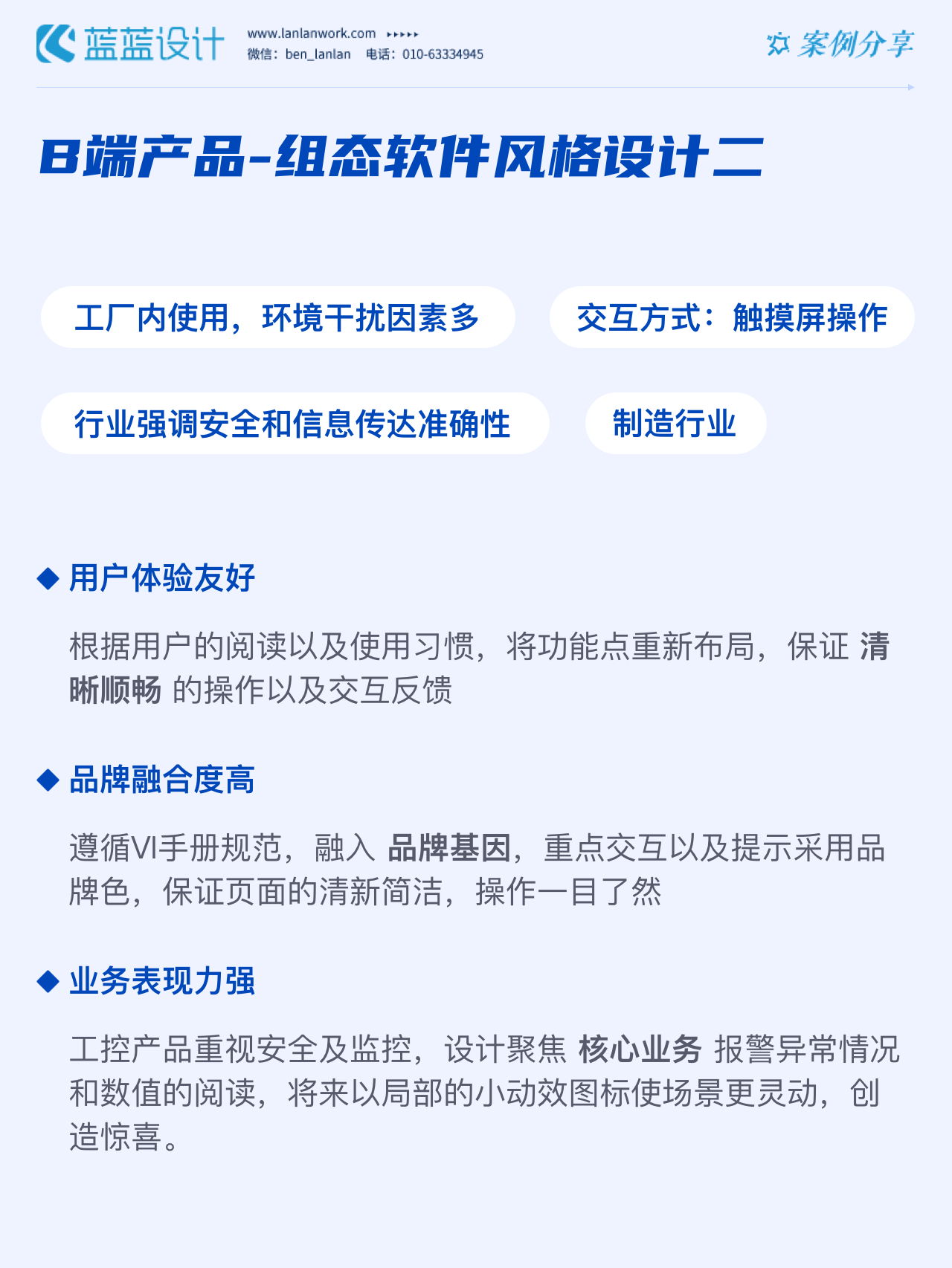 藍(lán)藍(lán)設(shè)計(jì)的兩種組態(tài)軟件風(fēng)格都采用符合當(dāng)下審美潮流的2D插畫效果,既保證了視覺效果美觀的同時(shí)也降低落地成本,方便后續(xù)的拓展、修改、提升與設(shè)計(jì)效率,同時(shí)注重用戶的閱讀習(xí)慣,將原功能點(diǎn)重新布局,主次內(nèi)容對(duì)比明顯,降低視覺噪音,保證清晰順暢的操作,提升用戶體驗(yàn)!