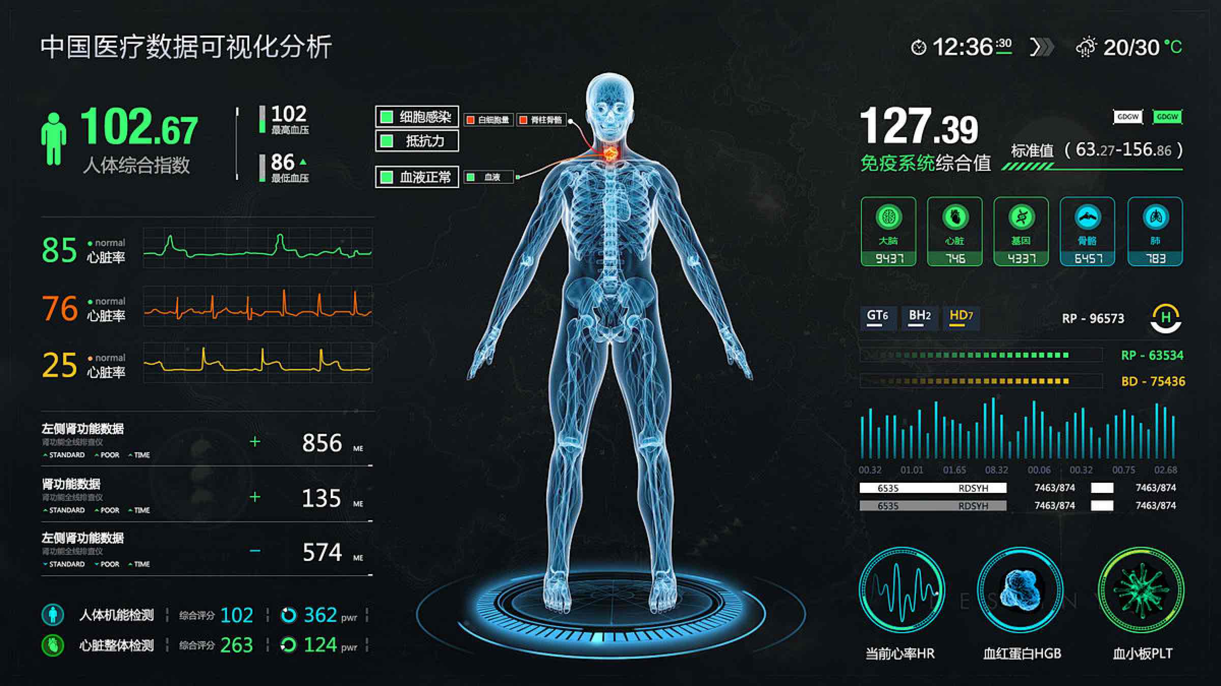醫(yī)療數(shù)據(jù)來源廣泛且復(fù)雜多樣,涵蓋醫(yī)院信息系統(tǒng)(HIS)中的患者基本信息、電子病歷系統(tǒng)(EMR)里的詳細(xì)診療記錄、醫(yī)學(xué)影像存儲與傳輸系統(tǒng)(PACS)的影像資料,以及各類醫(yī)療物聯(lián)網(wǎng)設(shè)備實(shí)時(shí)采集的生命體征數(shù)據(jù)等。構(gòu)建可視化醫(yī)療大屏 UI 架構(gòu)的第一步,便是打造強(qiáng)大的底層數(shù)據(jù)整合層。通過專業(yè)的數(shù)據(jù)網(wǎng)關(guān)與中間件,運(yùn)用 ETL 技術(shù),將這些分散、異構(gòu)的數(shù)據(jù)進(jìn)行匯聚、清洗與標(biāo)準(zhǔn)化轉(zhuǎn)換。例如,將不同設(shè)備采集的心率數(shù)據(jù)統(tǒng)一格式,去除重復(fù)或錯誤錄入的患者病歷信息,確保數(shù)據(jù)的準(zhǔn)確性與一致性,為上層可視化展示筑牢根基。