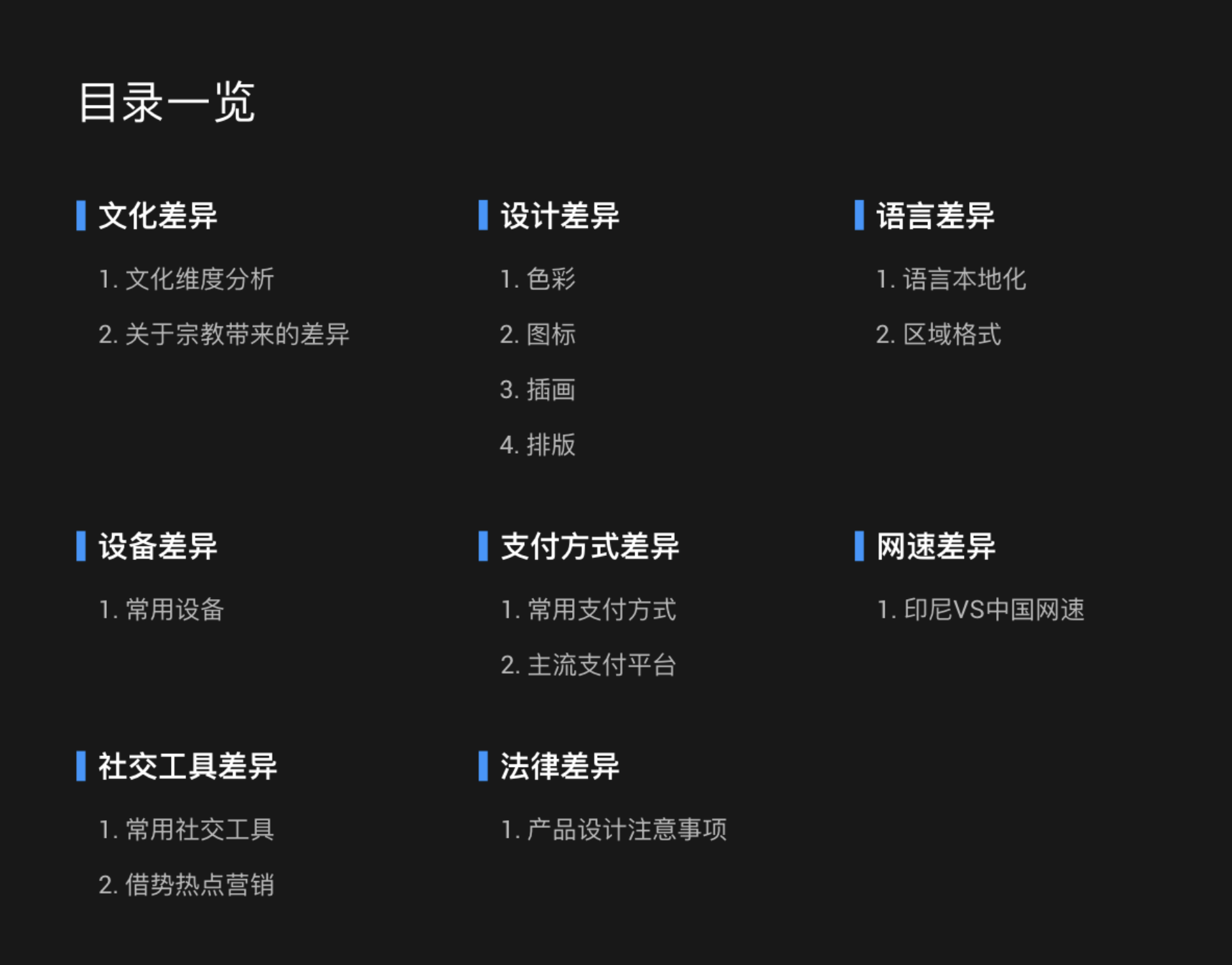 基于 hofstede 的文化維度可以幫助我們大致了解到當(dāng)?shù)氐奈幕h(huán)境,但不可避免的是維度會(huì)有所缺陷,因?yàn)槲幕遣粩喟l(fā)展的,并非靜止。即使在同一個(gè)國家,人們之間也是存在很大的個(gè)體文化差異,有條件的可以去當(dāng)?shù)刈鍪袌稣{(diào)研,獲取更詳細(xì)的信息。