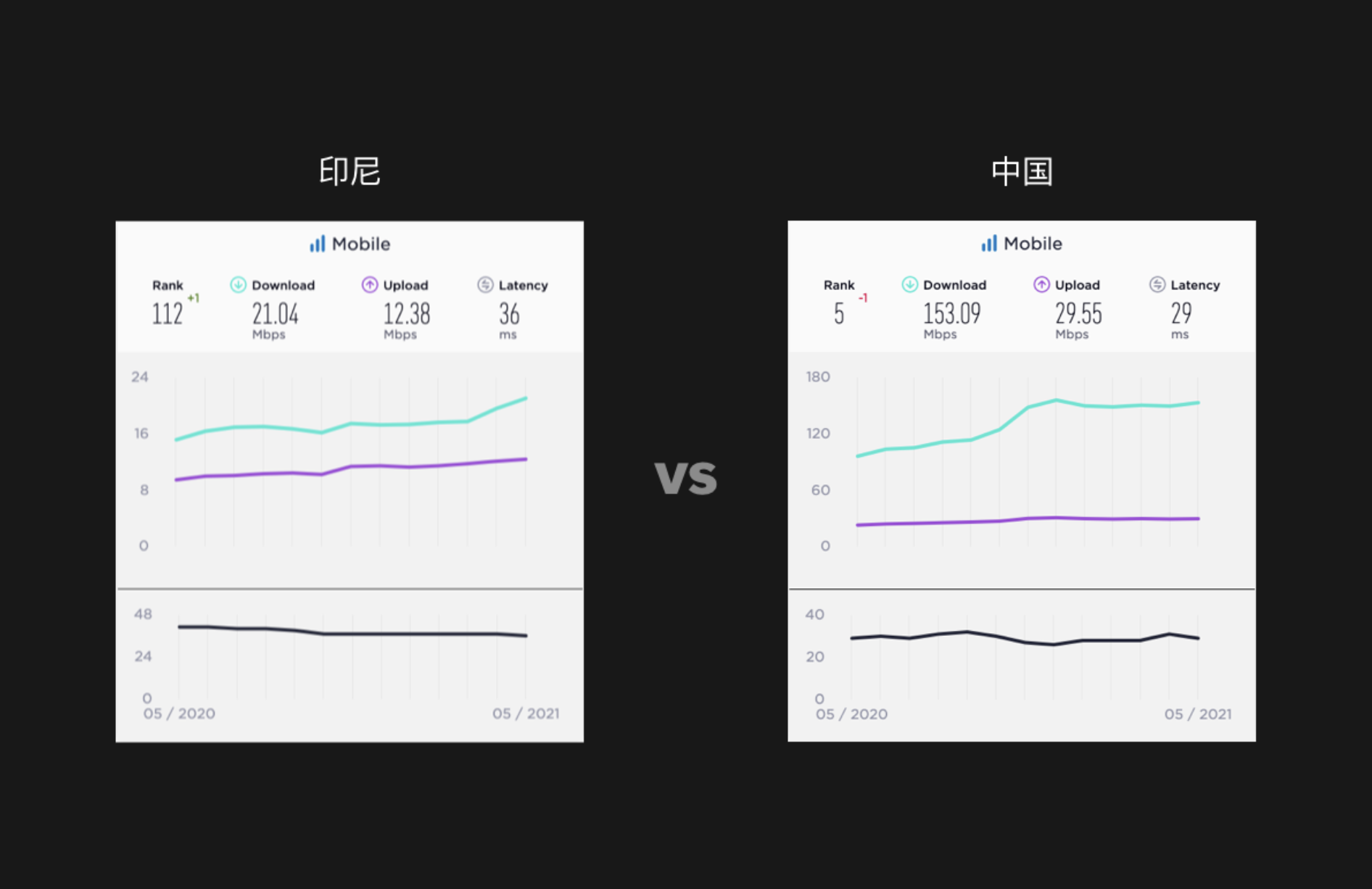 下圖是 2021 年數(shù)據(jù),印尼的下載網(wǎng)速 21.04Mbps, 在全球排名 112。中國的下載網(wǎng)速是 153.09Mbps, 全球排名第 5,進(jìn)行對(duì)比后大家對(duì)印尼的網(wǎng)絡(luò)環(huán)境應(yīng)該更有體感了。