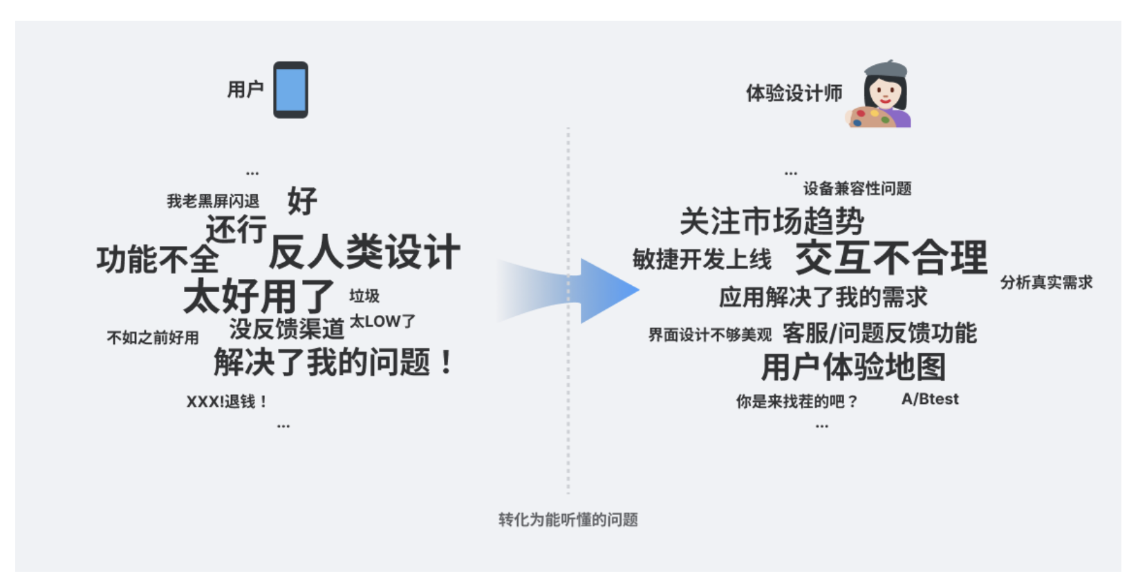 設(shè)計(jì)師需把模糊的問題轉(zhuǎn)化為具體方向,比如 “退款入口難找”→“框架層的導(dǎo)航設(shè)計(jì)問題”,避免籠統(tǒng)地說 “體驗(yàn)不好”。
