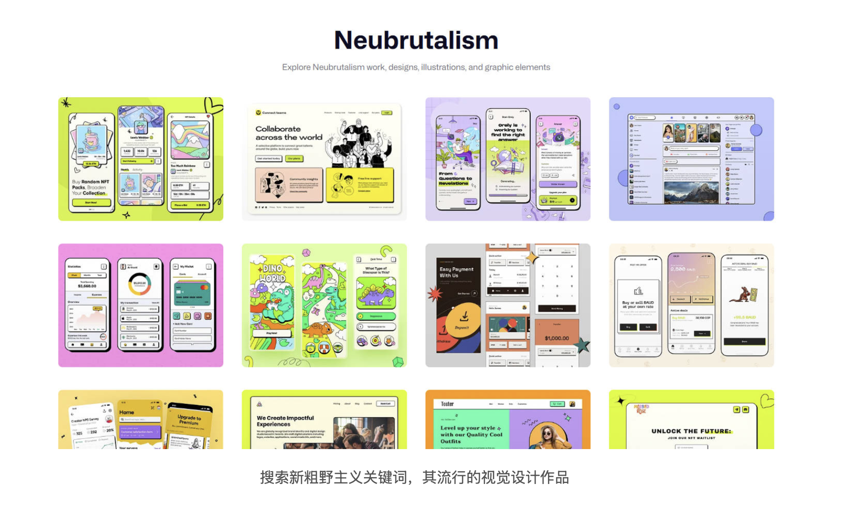 作為數(shù)字設(shè)計(jì)領(lǐng)域的 "叛逆者",新粗野主義的風(fēng)格特點(diǎn)極具辨識度。在視覺呈現(xiàn)上,它追求極致的直接性:字體往往選擇粗黑、夸張的樣式,成為畫面的視覺核心;插圖和動畫多采用強(qiáng)烈的視覺化風(fēng)格,主題多元且充滿張力;界面設(shè)計(jì)摒棄冗余信息,以最直白的方式呈現(xiàn)核心功能,哪怕犧牲部分 "易用性",也要堅(jiān)守 "功能大于形式" 的原則。這種 "反 UX" 的交互體驗(yàn),看似違背設(shè)計(jì)常理,實(shí)則是對過度設(shè)計(jì)的反叛 —— 它拒絕用精致包裝掩蓋本質(zhì),讓設(shè)計(jì)回歸最原始的溝通功能。