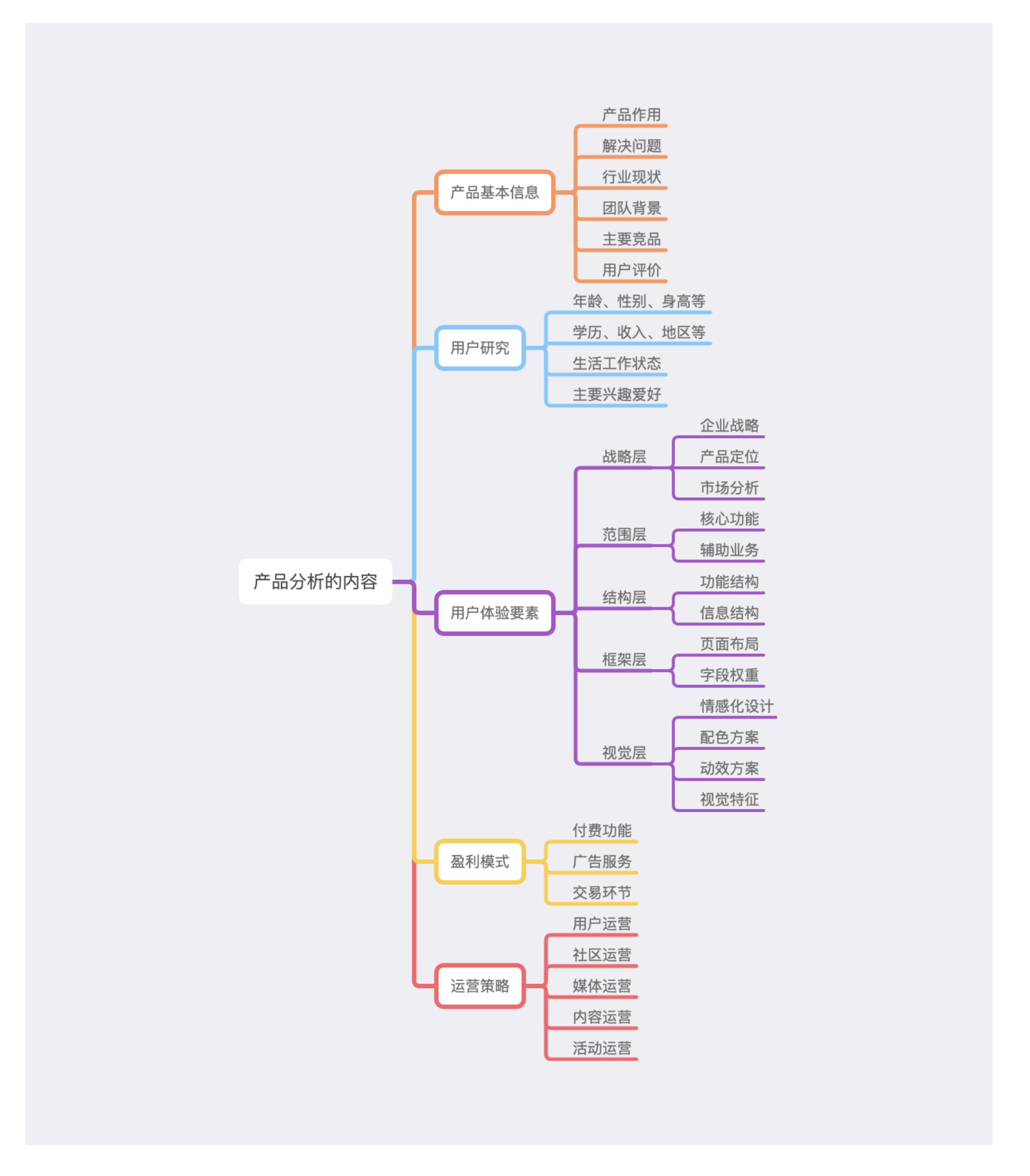 基于基礎(chǔ)信息,從 “用戶研究→用戶體驗(yàn)五要素→盈利模式→運(yùn)營策略” 四個(gè)核心維度展開分析,每個(gè)維度都需緊扣前期設(shè)定的目標(biāo)。