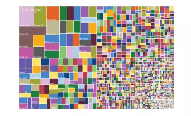 和iPhone不同,有百來(lái)個(gè)不同的生產(chǎn)商在基于安卓系統(tǒng)研發(fā)他們的手機(jī)。舉個(gè)例子,OpenSignal.com的網(wǎng)站上有一份乍看美不勝收實(shí)則細(xì)思極恐的安卓碎片化信息圖。