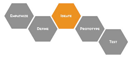 第三步:Ideate(“設(shè)想”,其實(shí)就是做頭腦風(fēng)暴,盡可能多的去想解決方案,想自己項(xiàng)目可能涉及到的人,然后再簡化為一個(gè)具體的方法)。