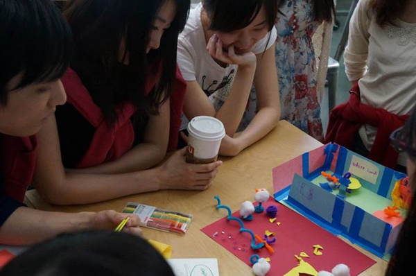 (利用各種材料做手工,展示給別的同學(xué)看,Photo by Tatsuhiro Ohtani ,VIA同事)