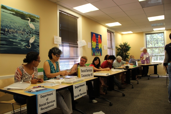 (找來Stanford別家NGO的義工還有我們VIA的領(lǐng)隊(duì)充當(dāng)“政府部門”,由于場地原因,這個(gè)Poverty Simulation不是在D.School里面做的,我們借用了校園里隔壁一棟樓的Seminar Room)