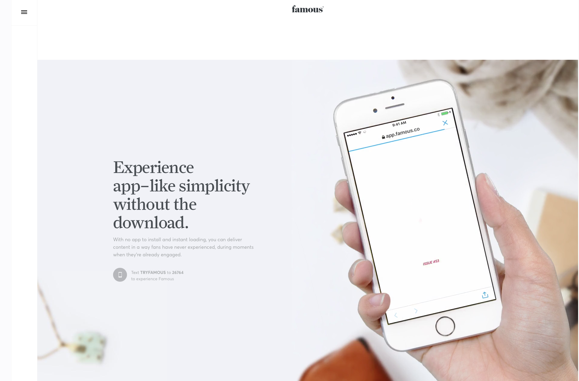 5 https://famous.co 大氣的首先是格局,其次是創(chuàng)新的網站動效、視頻 ,而后是把平面設計中的設計方法,善用對比,字體的選擇、大小,主次的不同字體色彩,綜合應用到網站中,很有設計感,品質不俗。