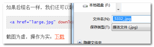 例如,我們希望點擊“下載”鏈接下載圖片而不是瀏覽,直接增加一個download屬性就可以: