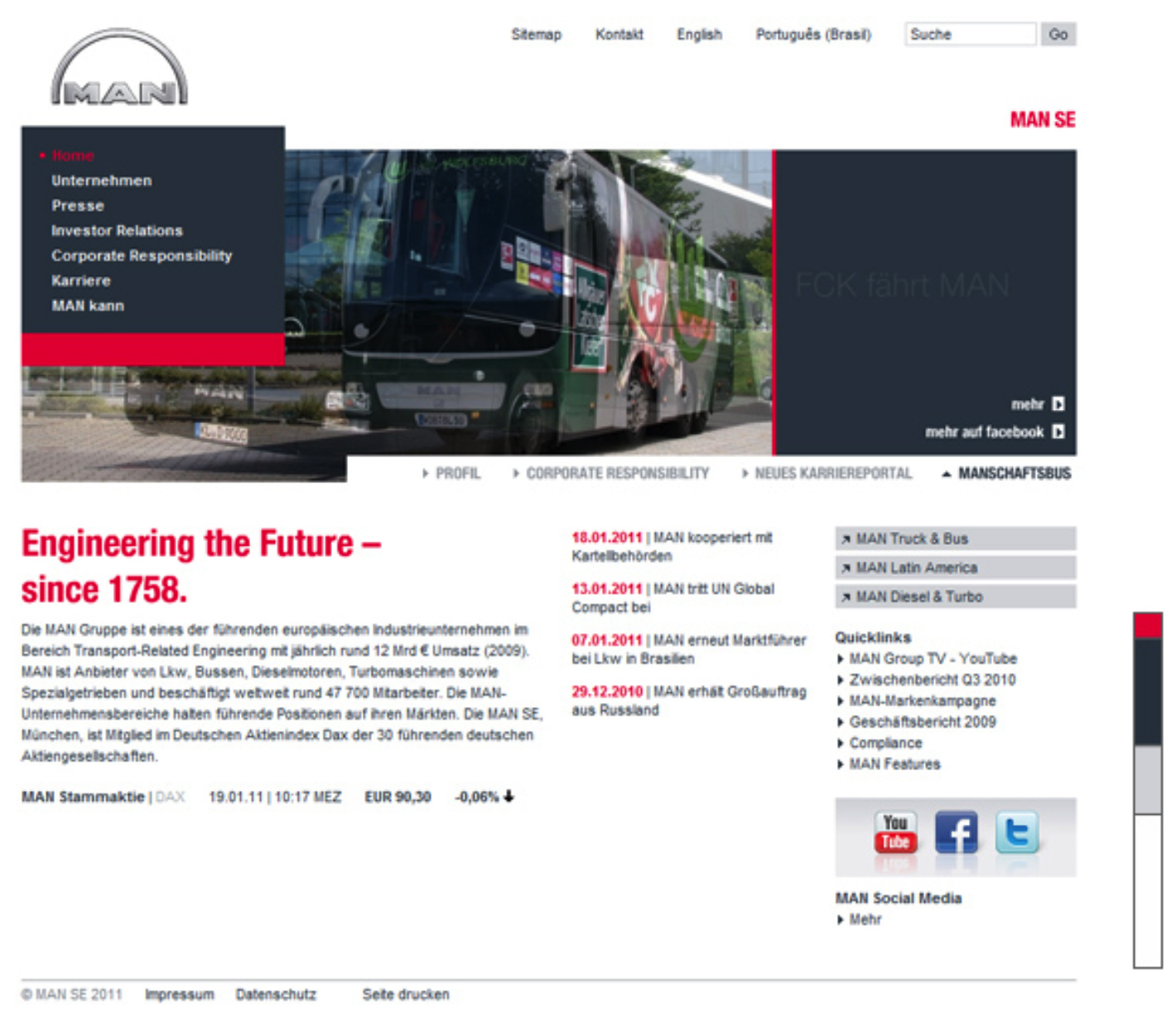 DB對文字色彩的運用,幾乎沒有純黑,也在綠色、藍(lán)色中滲入灰色,同時減少圖片的純度,增大對比度。使整個網(wǎng)站看起來沉靜穩(wěn)重。