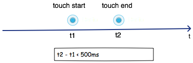 3.touchend 發(fā)生在 touchstart后的很短時間內(nèi)(如下圖)。這個時間段的閾值是毫秒級,用來限制手指和屏幕接觸的時間。因為單擊事件從開始到結(jié)束是很快的。