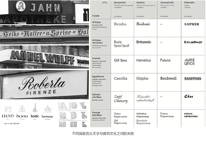 如在不同文化背景的國(guó)家,店面門口招牌字設(shè)計(jì)的不同,以及它與建筑文化之間的關(guān)聯(lián);