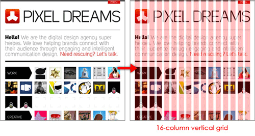 花時間觀察一些簡潔風(fēng)格的網(wǎng)站 ,你會發(fā)現(xiàn)它們當(dāng)中的絕大多數(shù)都有用到經(jīng)過良好規(guī)劃的網(wǎng)格布局系統(tǒng)。如果哪位朋友對網(wǎng)格布局還不大了解的話,可以設(shè)想一下,在著手進行實際的視覺設(shè)計工作之前,使用輔助線將頁面劃分為若干等寬的列,通過這種方式對頁面結(jié)構(gòu)及元素的布局進行更精準(zhǔn)的規(guī)劃。網(wǎng)格布局可以使設(shè)計方案當(dāng)中的信息結(jié)構(gòu)更加清晰,在視覺上具有強烈的節(jié)奏感與一致性。