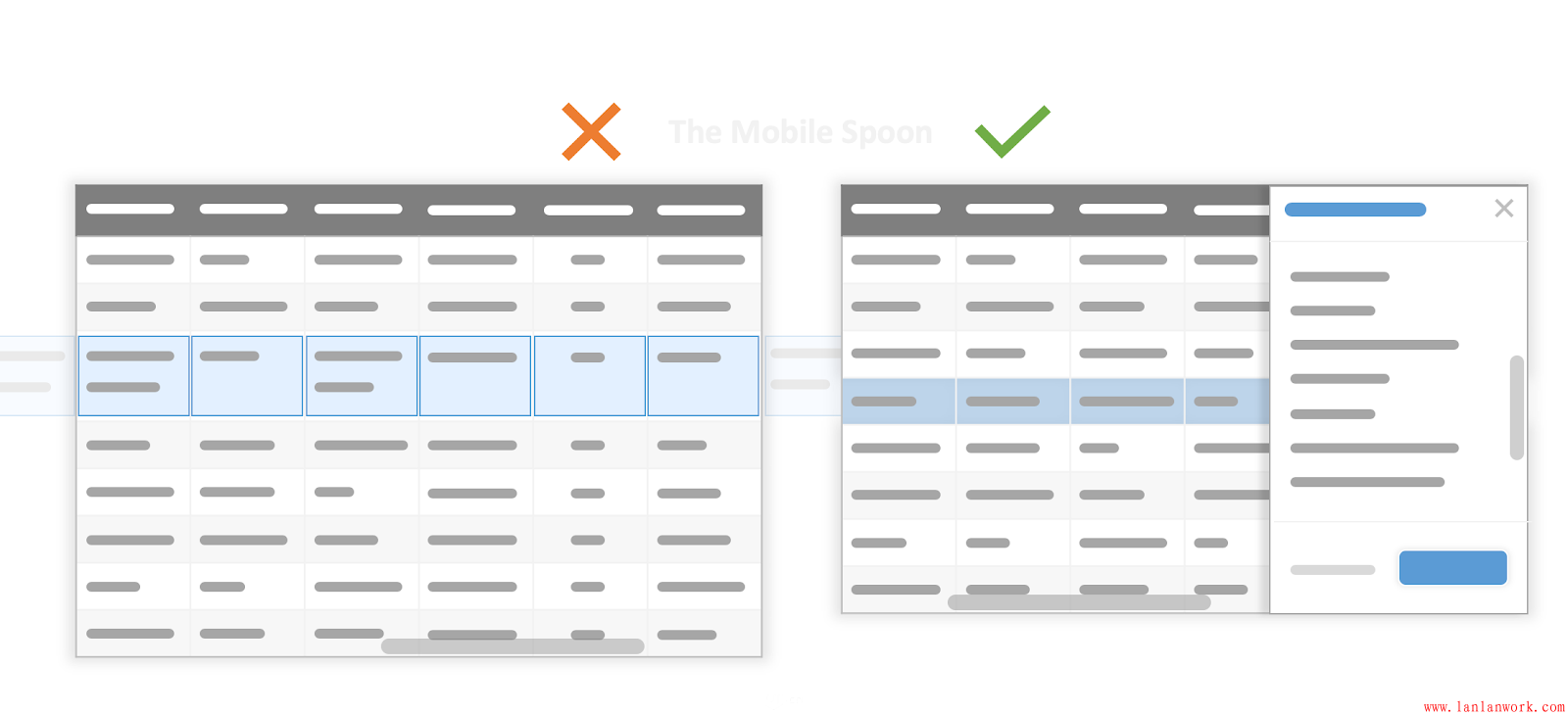 不停的滾動(dòng)、縮小的列、隱藏的文本,這些都會(huì)干擾用戶體驗(yàn),所以一定要在小屏幕上驗(yàn)證你的設(shè)計(jì),并且盡可能使用上一段時(shí)間去切實(shí)體驗(yàn)用戶使用情況(而不是隨意測(cè)試)。
