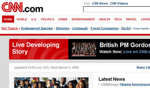 繼續(xù)關注新聞站點, CNN 在字體大小寫上缺少變化來平衡頁面。導航條是全部大寫的,但頁面中的其余部分則很傳統(tǒng)地幾乎全部采用了首字母大寫。
