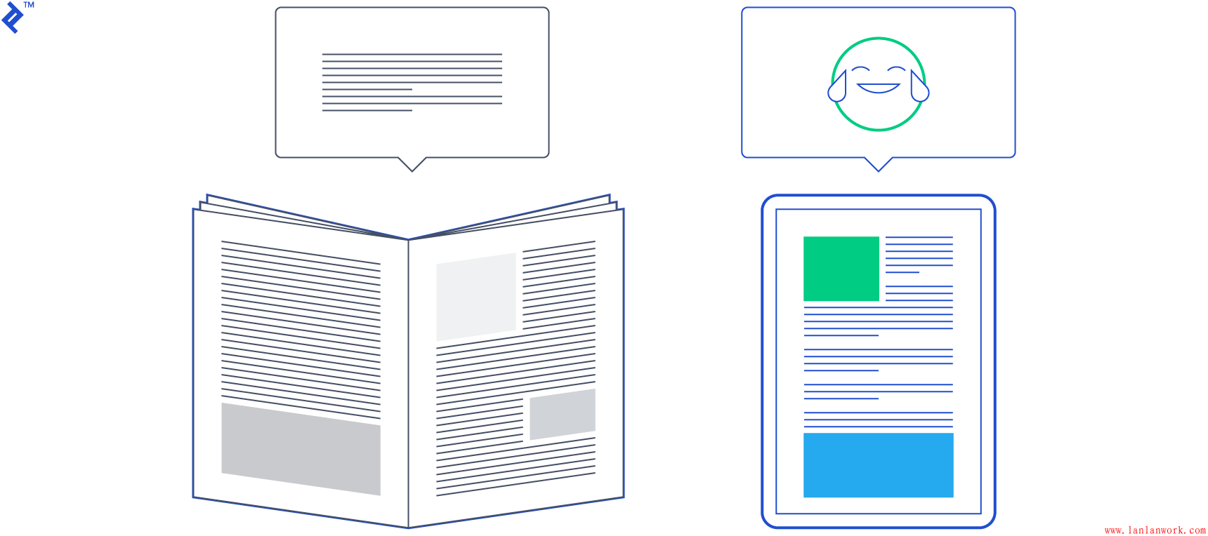 報(bào)紙必須迅速調(diào)整他們的設(shè)計(jì)以適應(yīng)新技術(shù)。其他內(nèi)容產(chǎn)業(yè)也紛紛效仿。