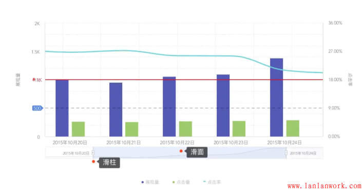 數(shù)據(jù)產(chǎn)品不要試圖去掩蓋問題,而要反映真實數(shù)據(jù),暴露問題,并且和用戶一同解決。比如對數(shù)據(jù)閾值進行監(jiān)測,預(yù)警線就是很友好的可視化方式。