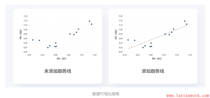 (1)根據(jù)數(shù)據(jù)特點選擇橫縱向輔助線,橫向引導(dǎo)線增強水平方向的導(dǎo)視。縱向引導(dǎo)線增強垂直方向的導(dǎo)視。