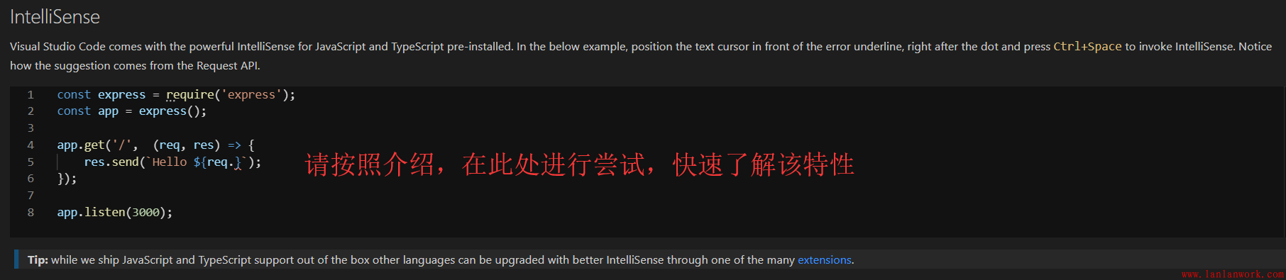 Visual Studio Code 預(yù)裝了強大的JavaScript和TypeScript智能感知。
