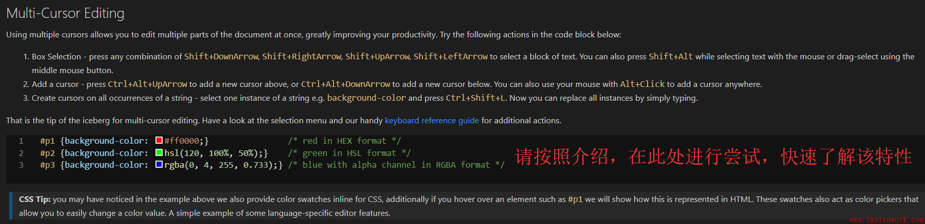 多光標編輯(Multi-Cursor Editing)- 選擇一塊區(qū)域,選擇所有匹配項,添加其余光標等