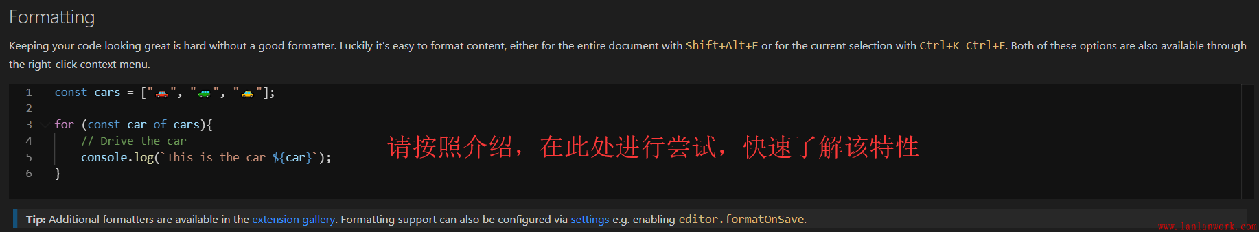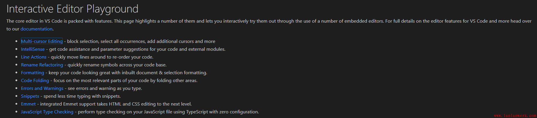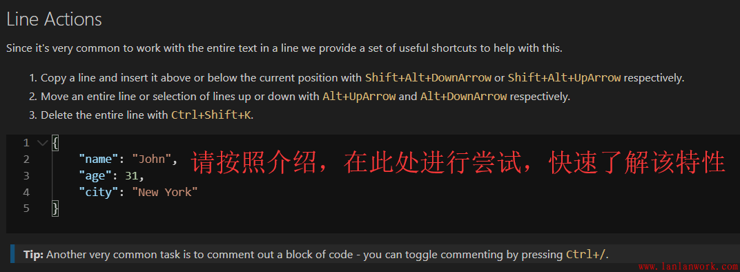 VS代碼中的核心編輯器包含許多特性。此頁高亮顯示了10個特性,每個特性介紹中都提供了代碼行供你編輯
