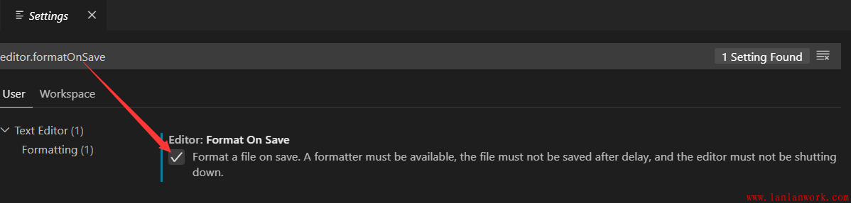 將格式化操作設(shè)置為自動化(保存時自動格式化整個文檔):Ctrl + , 輸入 editor.formatOnSave