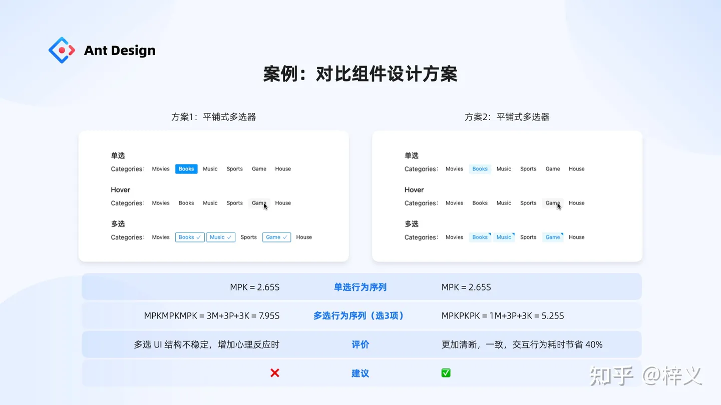 滿足一個「行為目的」可以有千萬種組件解決方案,那么哪種方案是最適合成為規(guī)范的呢?接下來第二部分就會跟大家分享如何評估組件方案的好壞。