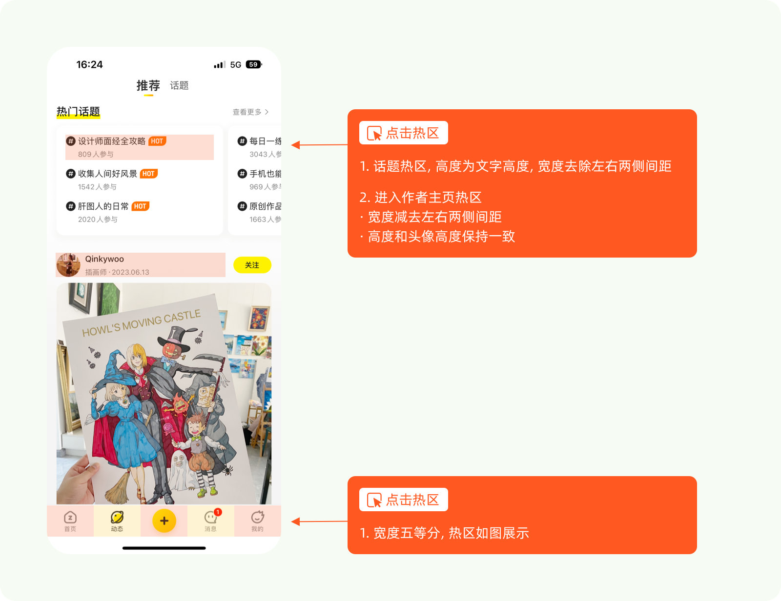點擊熱區(qū)是指用戶在界面上最容易點擊的區(qū)域。可以標注出點擊熱區(qū)的位置、大小和形狀,以便團隊成員在實現(xiàn)交互時更好地考慮用戶體驗和操作習慣。
