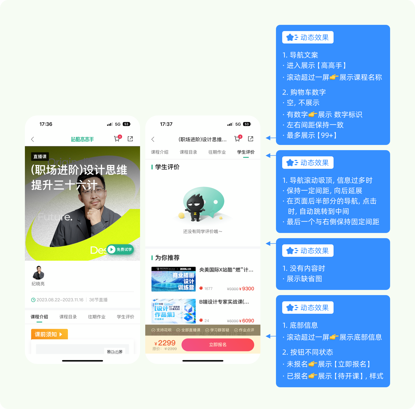設計師可以通過標注動態(tài)效果來提供更詳細的設計信息,以便研發(fā)工程師能夠準確地理解不同狀態(tài)下的展示效果和交互方式。這對于實現(xiàn)設計意圖和提供優(yōu)質的用戶體驗至關重要。