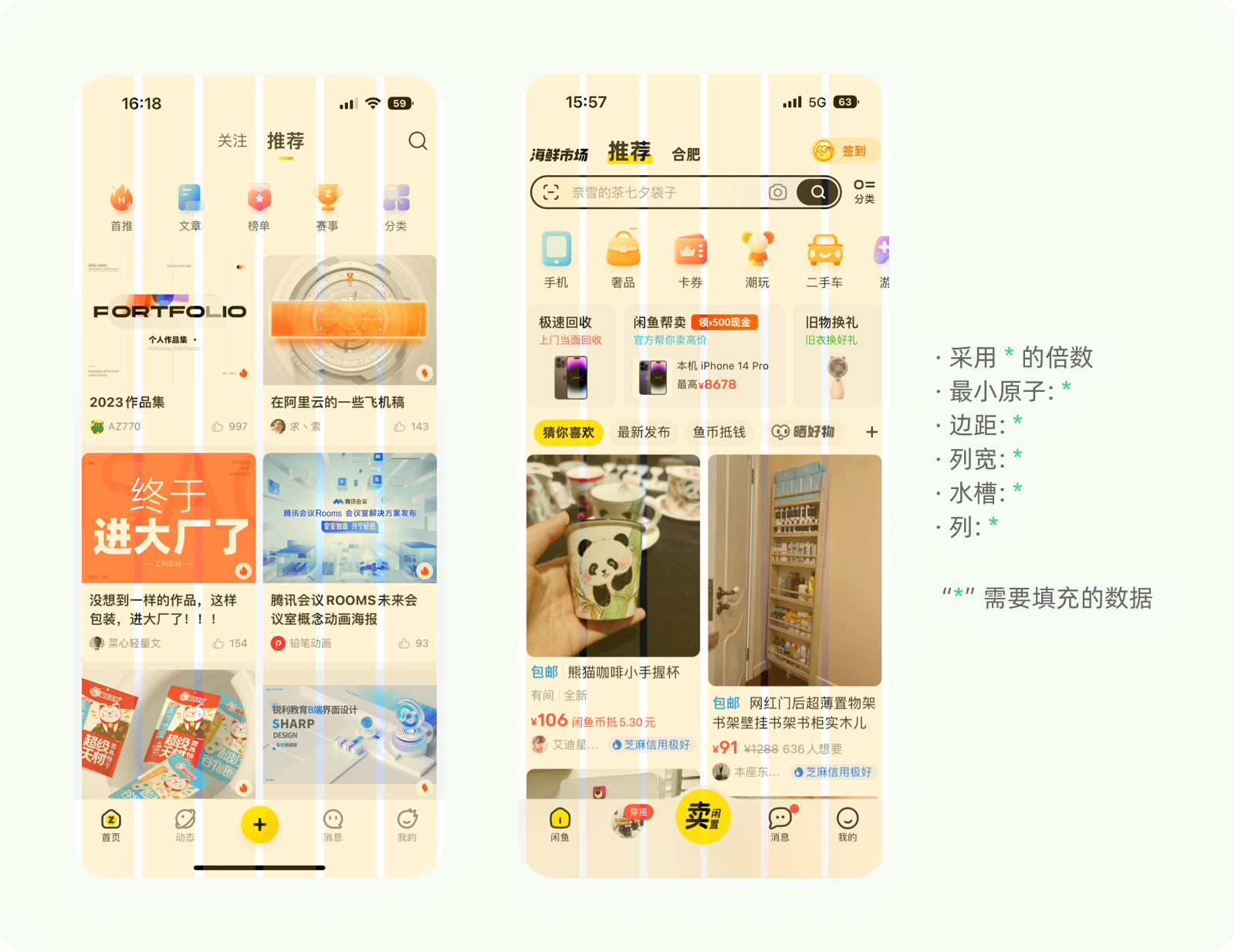 柵格的規(guī)則定義了一套底層的、統(tǒng)一的測量單位,當設計團隊內對此達成共識時,可以避免因屏幕適配、比例換算產生的像素偏移,適配多種屏幕,提升設計稿件中元素屬性的一致性和規(guī)范化。