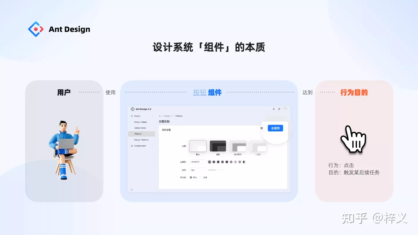 其實,為設計系統(tǒng)設計一個組件,一樣如此。用戶通過界面使用我們的組件,并非為了用而用,而是為了達到他的某種行為目的。如果我們回歸到這樣一個簡單的本質,那么對于組件的定義可能就十分清晰了。