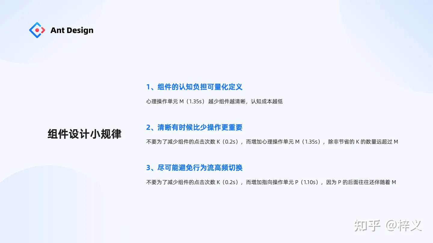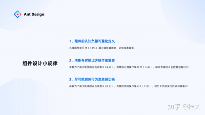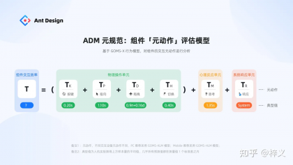 在螞蟻內部,我們還將原規(guī)范應用到其它設計系統(tǒng)的建設當中。比如,Ant Design Mobile 5.0 今年引來大版本的更新,從 200+ 的冗余組件收斂成了 68 個通用組件,同時通過評估發(fā)現(xiàn)其組件質量也提升了不少,系統(tǒng)中單組件平均交互行為耗時從 3.42 降到了 3.17,高于業(yè)界平均。