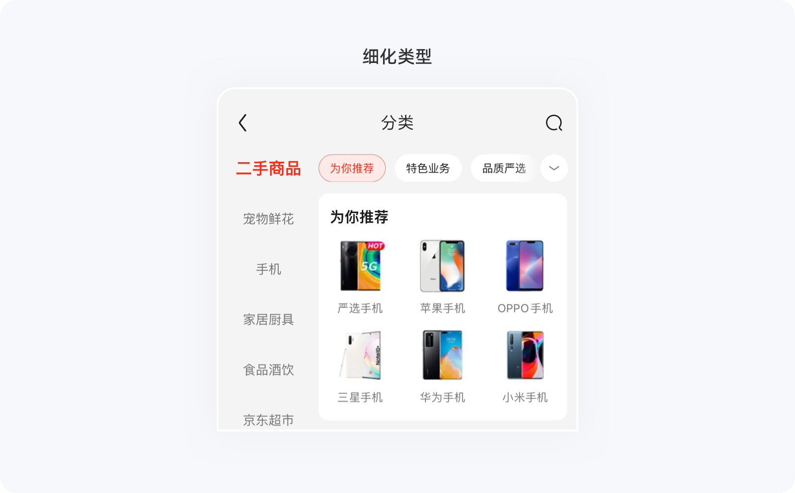 這里最為典型的例子就是電商平臺(tái)的分類,它通過一級(jí)、二級(jí)、甚至三級(jí)分類將商品所涉及到的類型合理的控制在有效范圍內(nèi),這些選項(xiàng)被分類/分組之后,關(guān)鍵信息得到強(qiáng)化,能輔助用戶快速作出決策。還有后面的二次篩選功能,幫助用戶進(jìn)一步縮小范圍,選擇效率明顯會(huì)更高。當(dāng)然,這不僅僅是依靠??硕?,還得結(jié)合運(yùn)營(yíng)需求、用戶數(shù)據(jù)等因素進(jìn)行合理化分類。