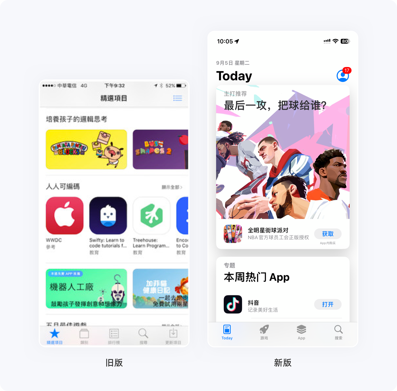 對(duì)用戶來說,選項(xiàng)越多就越復(fù)雜,需要的決策時(shí)間就越長(zhǎng),尤其是用戶在絕大多數(shù)情況下所看到的頁(yè)面都存在信息過剩的情況,這時(shí)候,產(chǎn)品需解決的不是選項(xiàng)夠不夠的問題,而是選項(xiàng)夠不夠好。當(dāng)存在大量選項(xiàng)時(shí),可適度減少選項(xiàng)的數(shù)量,不僅能降低用戶的思考時(shí)間,也提高了選項(xiàng)的質(zhì)量。iPhone用戶應(yīng)該比較清楚,蘋果始終在不遺余力的遵循??硕桑珹PP Store就是最好的例子,從改版前大量的推薦應(yīng)用堆積到改版后信息量的減少,選擇目標(biāo)瞬間清晰了很多,用戶體驗(yàn)得到了大幅度的提升